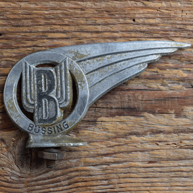 Schutzblechfigur BÜSSING, Alu Druckguss, orig. Altbestand 50er Jahre, Zustand siehe Bild
