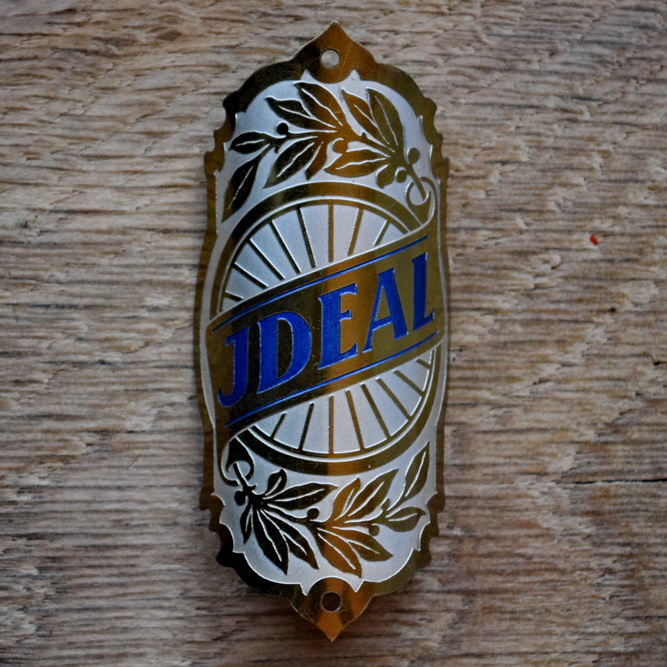 Steuerkopfschild IDEAL, 50er Jahre, Originalschild aus Sammlungsbestand, Lochabstand 64 mm Ideal für den passenden Fahrradoldtimer oder die Sammlervitrine. Zustand siehe Bild. Übrigens: Wir haben noch eine Riesenmenge weiterer Steuerkopfschilder und Schutzblechembleme im Bestand, die wir niemals alle listen können. Fragt einfach an, wenn Ihr auf der Suche nach einem speziellen Schild oder Emblem seid, vielleicht können wir helfen.