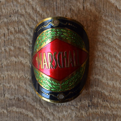 Steuerkopfschild Marshall, 30-50er Jahre, Originalschild aus Sammlungsbestand, Lochabstand 43 mm Ideal für den passenden Fahrradoldtimer oder die Sammlervitrine. Zustand siehe Bild. Übrigens: Wir haben noch eine Riesenmenge weiterer Steuerkopfschilder und Schutzblechembleme im Bestand, die wir niemals alle listen können. Fragt einfach an, wenn Ihr auf der Suche nach einem speziellen Schild oder Emblem seid, vielleicht können wir helfen.
