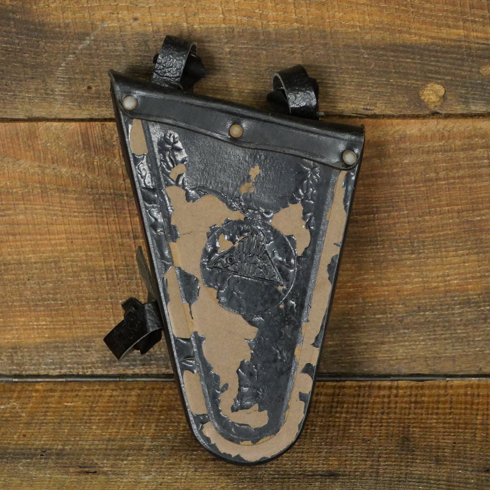 Werkzeugtasche LOHMANN für Herrenrad, Pappe lackiert, Klappe Leder, schwarz, original 40er J.,/WW2, NOS