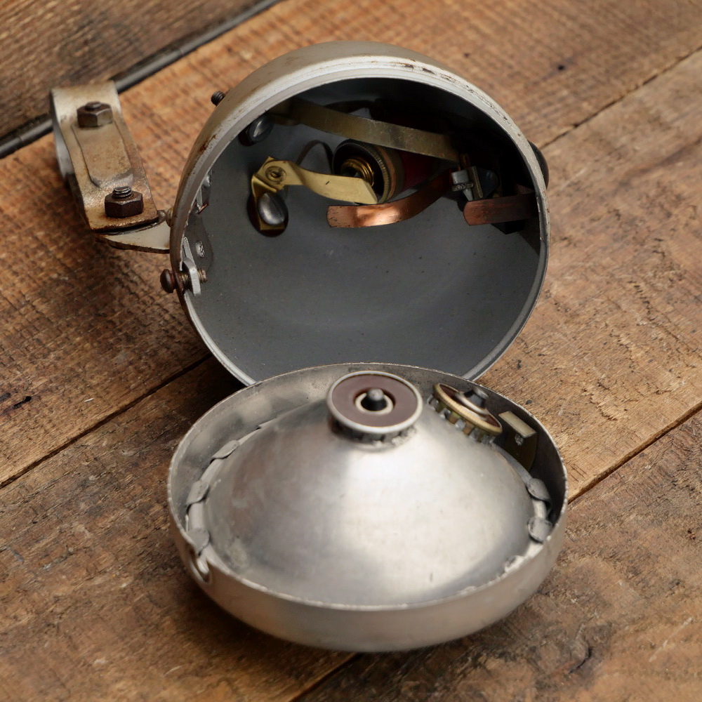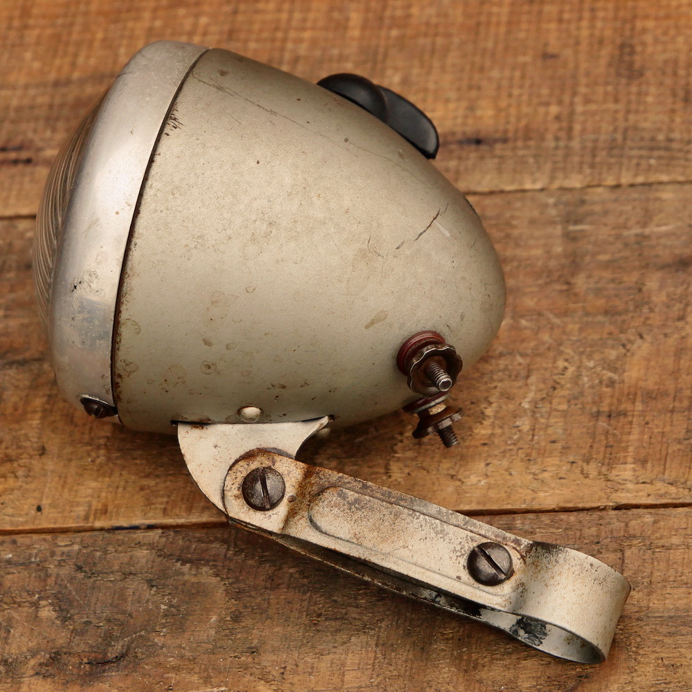 Scheinwerfer AUFA für Fahrrad, original DDR frühe 1950er J., Luxusausführung mit Abblendfunktion und Rücklicht- Kontrollleuchte, Durchmesser 9cm, silbergrau/Aluring, Originalglas, leicht gebraucht mit Patina, Zustand siehe Bilder