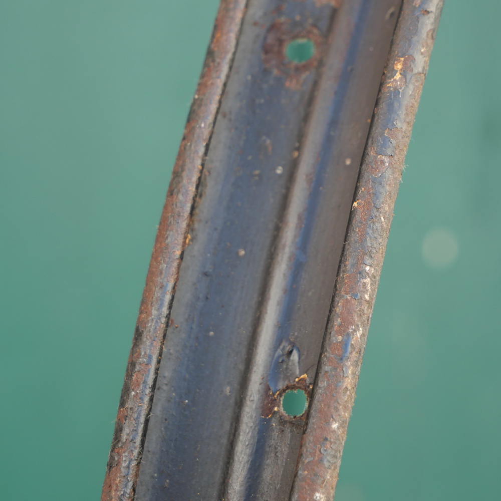 Fahrrad-Wulstfelge 28 Zoll Außendurchmesser ca. 645 mm, 20er/30er J., schwarz, Breite ca. 33 mm, 36 Loch, gebraucht, überstrichen, Substanz gut, Zustand gemäß Fotos