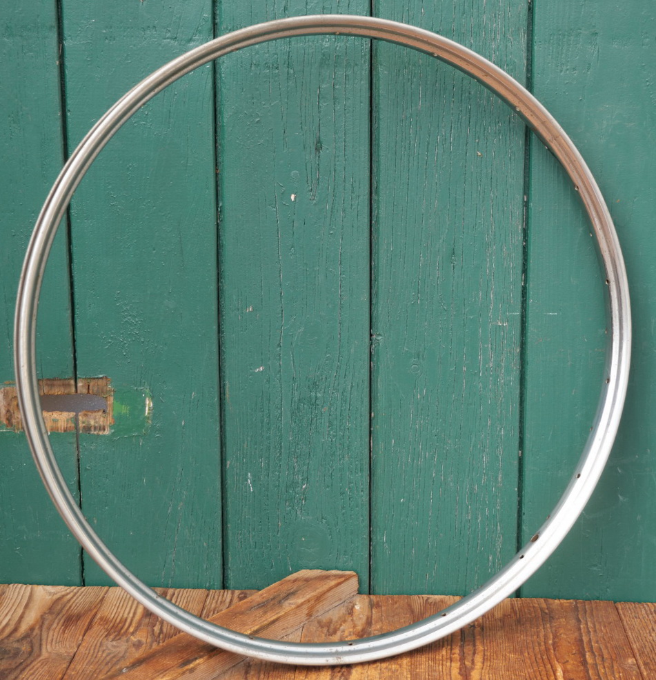 Fahrradfelge, 26 Zoll (559), für Drahtbereifung, verchromt, 30er - 50er J., 36-loch, gebohrt für 2mm Speichen, Breite ca. 35mm, alte Neuware mit leichter Patina, Zustand gemäß Fotos