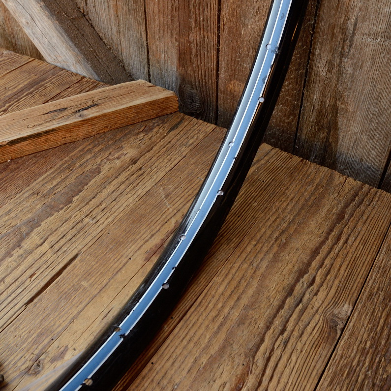 Fahrradfelge f. Wulstbereifung, 24" x 1 1/2 (540), Stahl, schwarz, blau-weiss liniert, orig. 30-50er Jahre, 36 Loch , 33mm breit, rare alte Neuware !