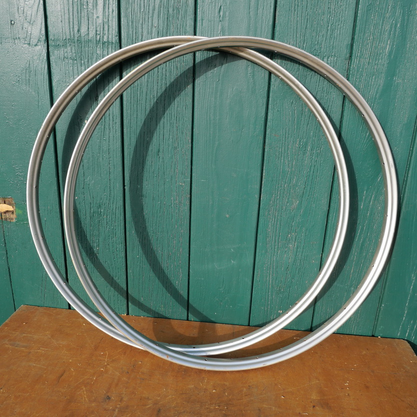 Fahrradfelgensatz für Drahtbereifung 28 Zoll, 28 x 1,75 (622), Breite 35 mm, silbern lackiert, 36-loch, NOS alte Lagerware, ggf. leichte Patina