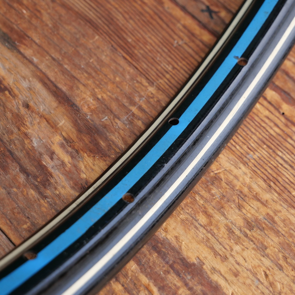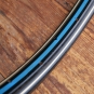 Felge, 26 Zoll (559), Stahl schwarz, Linierung weiß/blau, 30er-50er J., gebr.