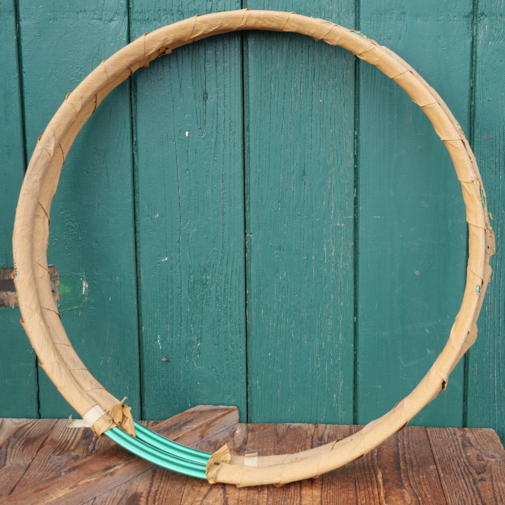Felgensatz, 26 Zoll (559), Stahl grün-metallic, Linien weiß geflammt/gold, 50er J., NOS