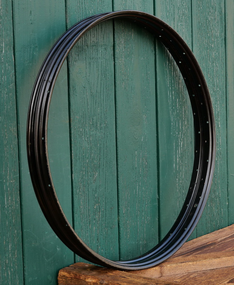 Felgensatz, 26 Zoll (559), schwarz, für Ballonrad, 30er-50er J., 36-Loch, gebohrt für 2mm Speichen, Breite ca. 35 mm, alte Neuware mit Lagerpatina, Zustand gemäß Fotos