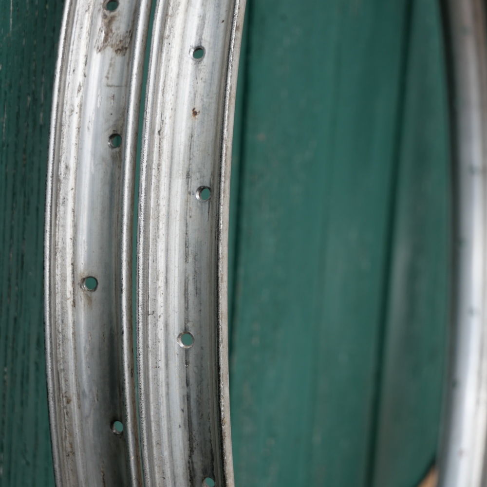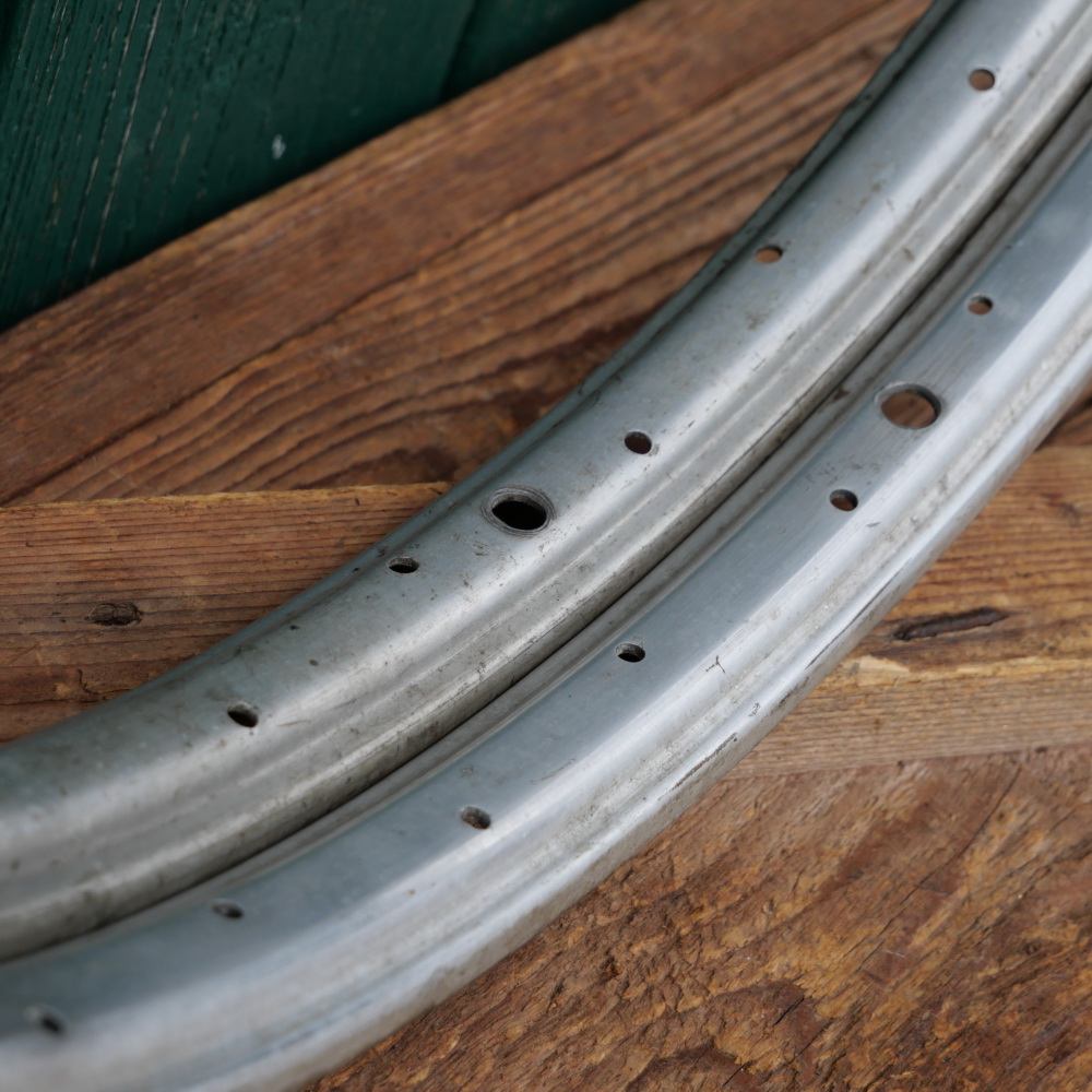 Felgensatz, 28 Zoll (622), Alu, 30er-50er J., 36 Loch, gebohrt für 2mm Speichen, Breite ca. 33mm, gebraucht mit Patina, Zustand gemäß Fotos