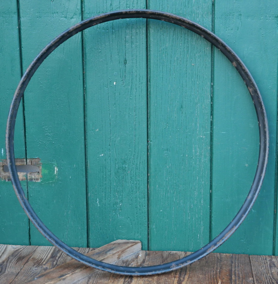 Westwood-Felge für Motorfahrrad, Marke: "Kronprinz", original 1930er - 50er Jahre, 26 x 2.00, schwarz lackiert, Breite ca. 38mm, 36 Loch, passend gebohrt für 5mm Speichennippel. Rare Felge Patina gem. Bildern.