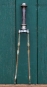 Fahrradgabel 26 Zoll GÖRICKE, lindgrün/weiß, Linien rot, für Sportrad 50er J., inkl. orig. Steuersatz, gebr.