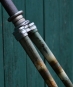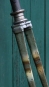 Fahrradgabel 26 Zoll GÖRICKE, lindgrün/weiß, Linien rot, für Sportrad 50er J., inkl. orig. Steuersatz verchromt, Schaftlänge 180 mm, Durchlaufhöhe 357 mm. Eine der ersten Aero-Gabeln! Gebraucht mit Patina, Zustand gemäß Fotos