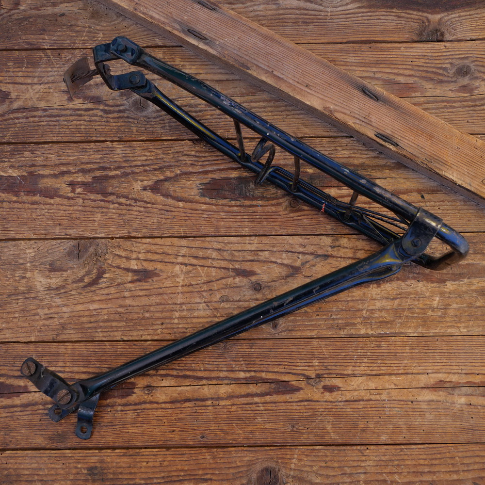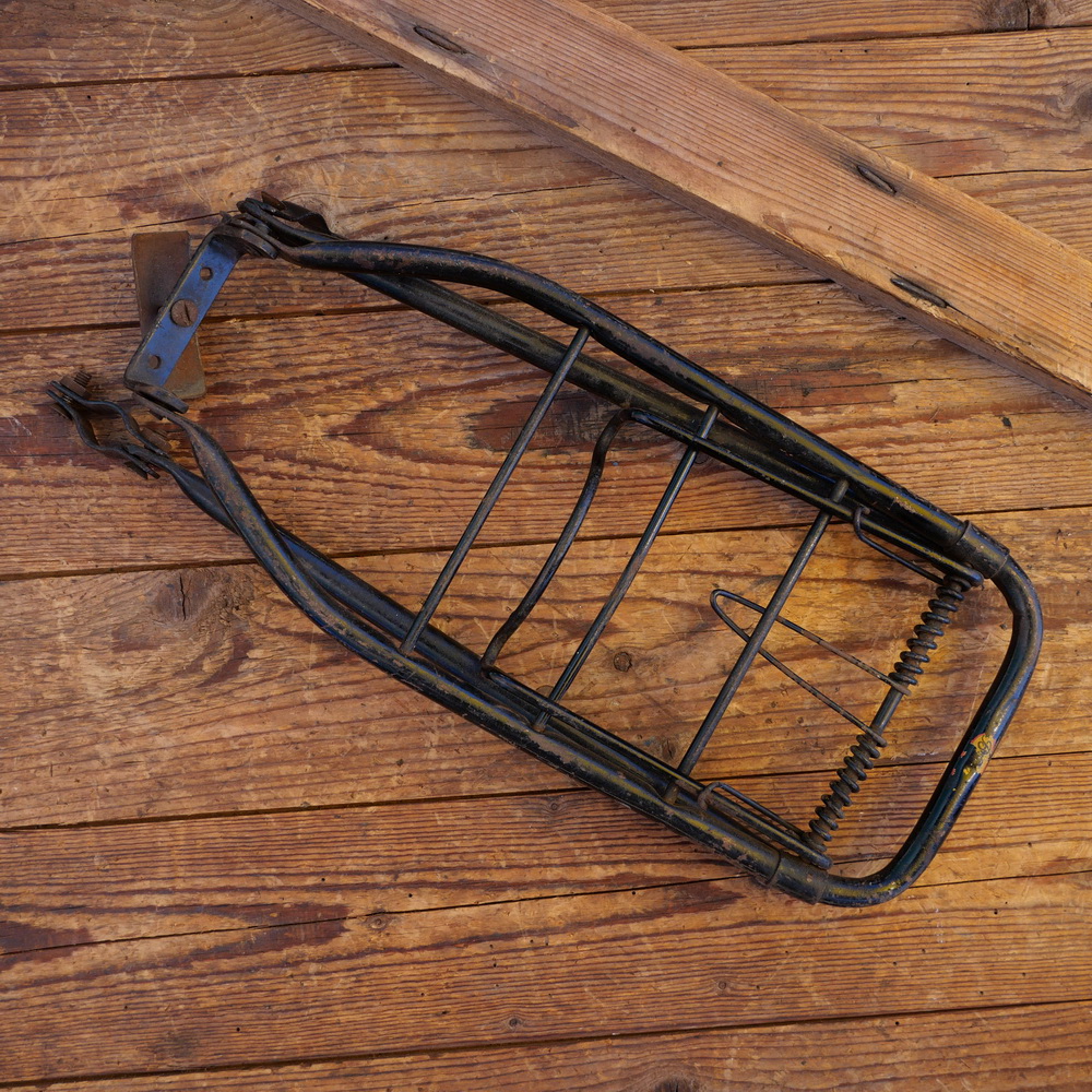 Gepäckträger, ca. 28 x 16cm, orig. 30er Jahre, für Schellenmontage, Streben ca. 32cm, schwarz leicht gebraucht, schöne Patina, Zustand gemäß Bildern.