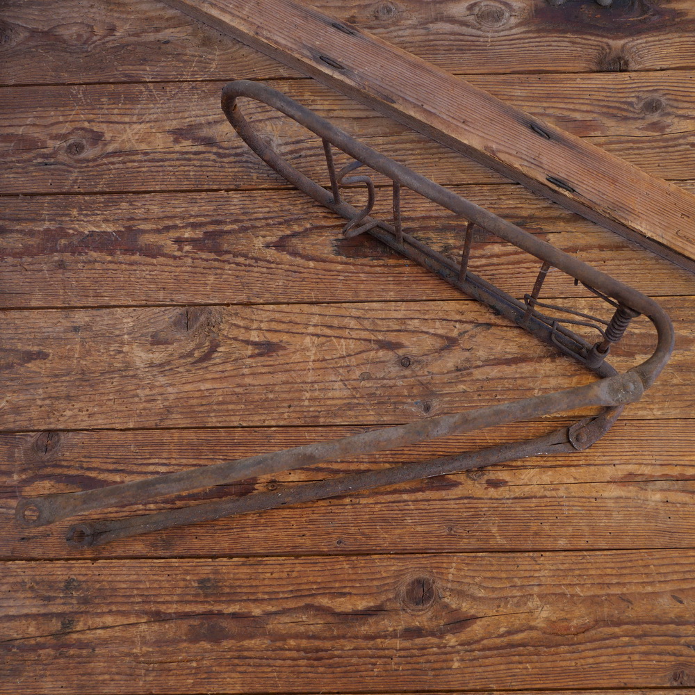 Gepäckträger, orig. 50er Jahre, Montage oben an den Sattelstreben, Montage unten auf der Achse, Ladefläche ca. 34 x 16 cm, Strebenlänge ca. 44 cm für 28 Zoll, gebraucht, Zustand gemäß Fotos