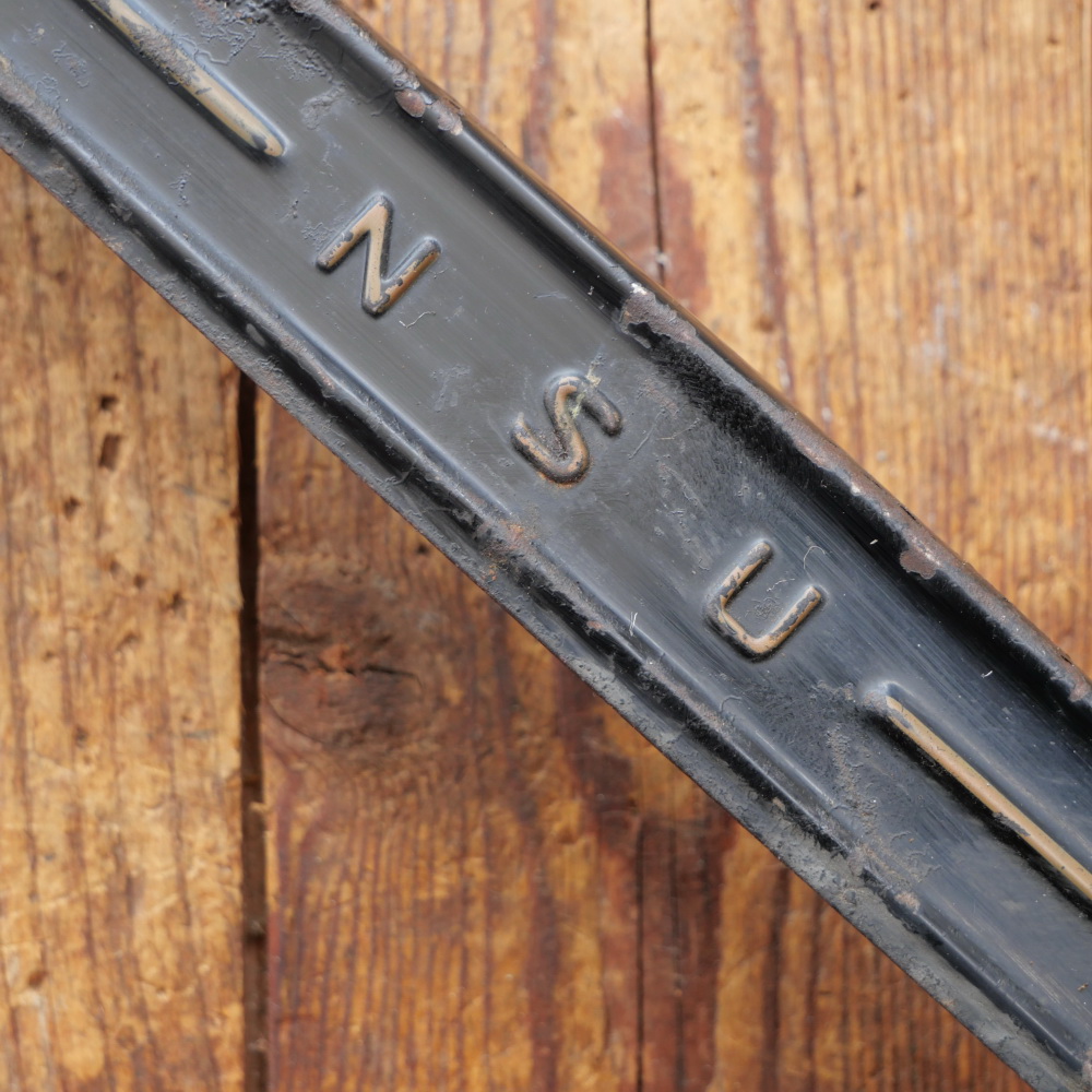 Kettenschutz NSU, Länge ca. 51 cm, orig. 50er/60er J., schwarz, Linien gold, gebraucht mit Patina, ohne Befestigungsmaterial, Zustand gemäß Bildern
