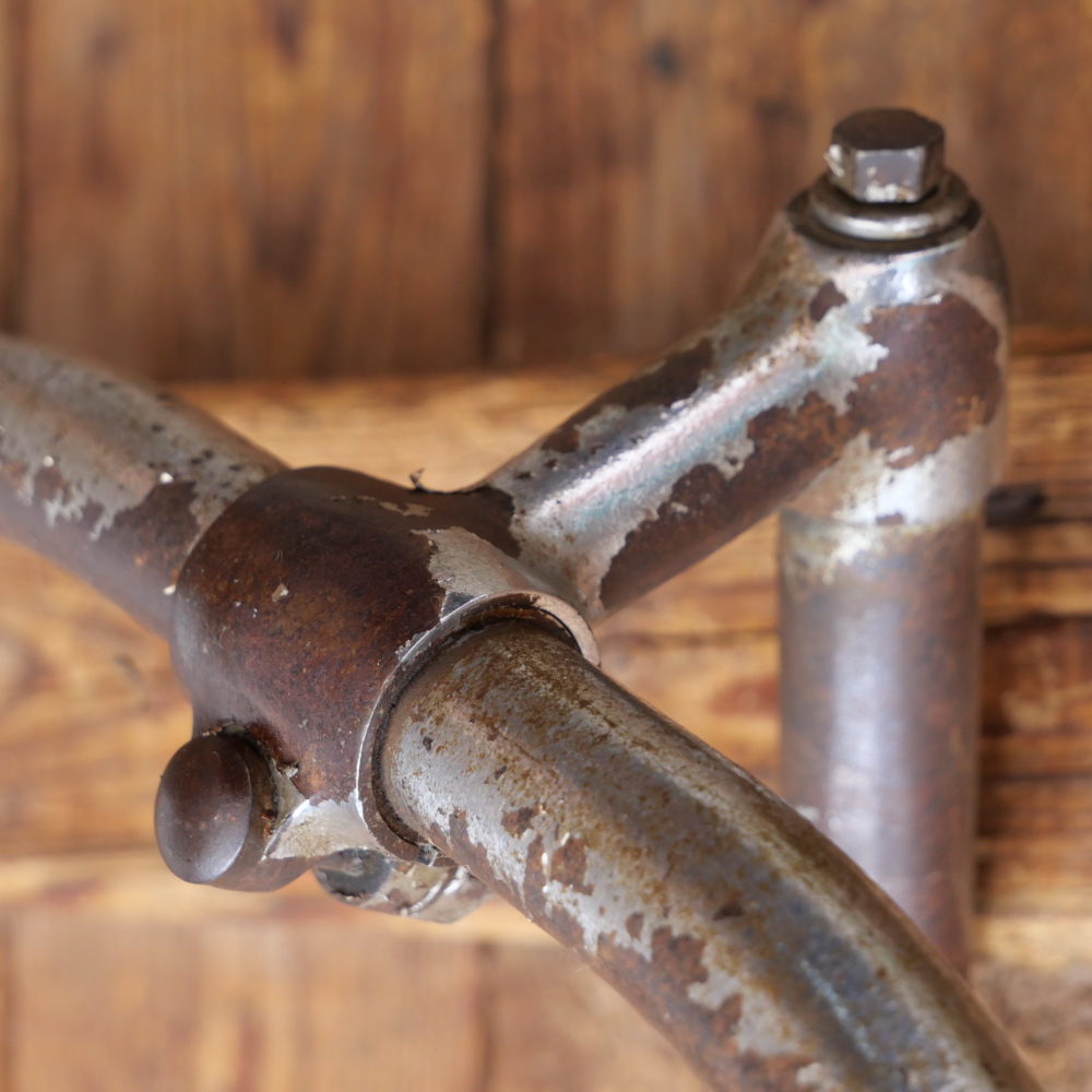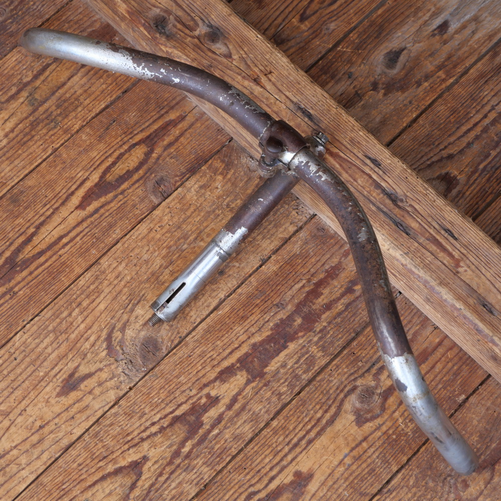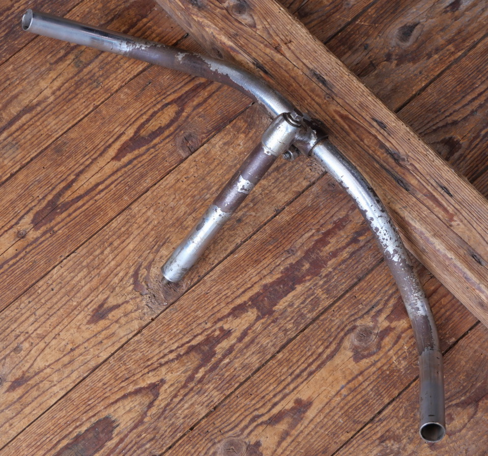 Fahrradlenker für Halbrenner, original 30er-50er Jahre, verchromt, Durchmesser Lenkrohr und Schaft 22,2 mm, Breite ca. 570 mm, Schaftlänge ca. 170 mm, gebraucht, Zustand siehe Bilder.