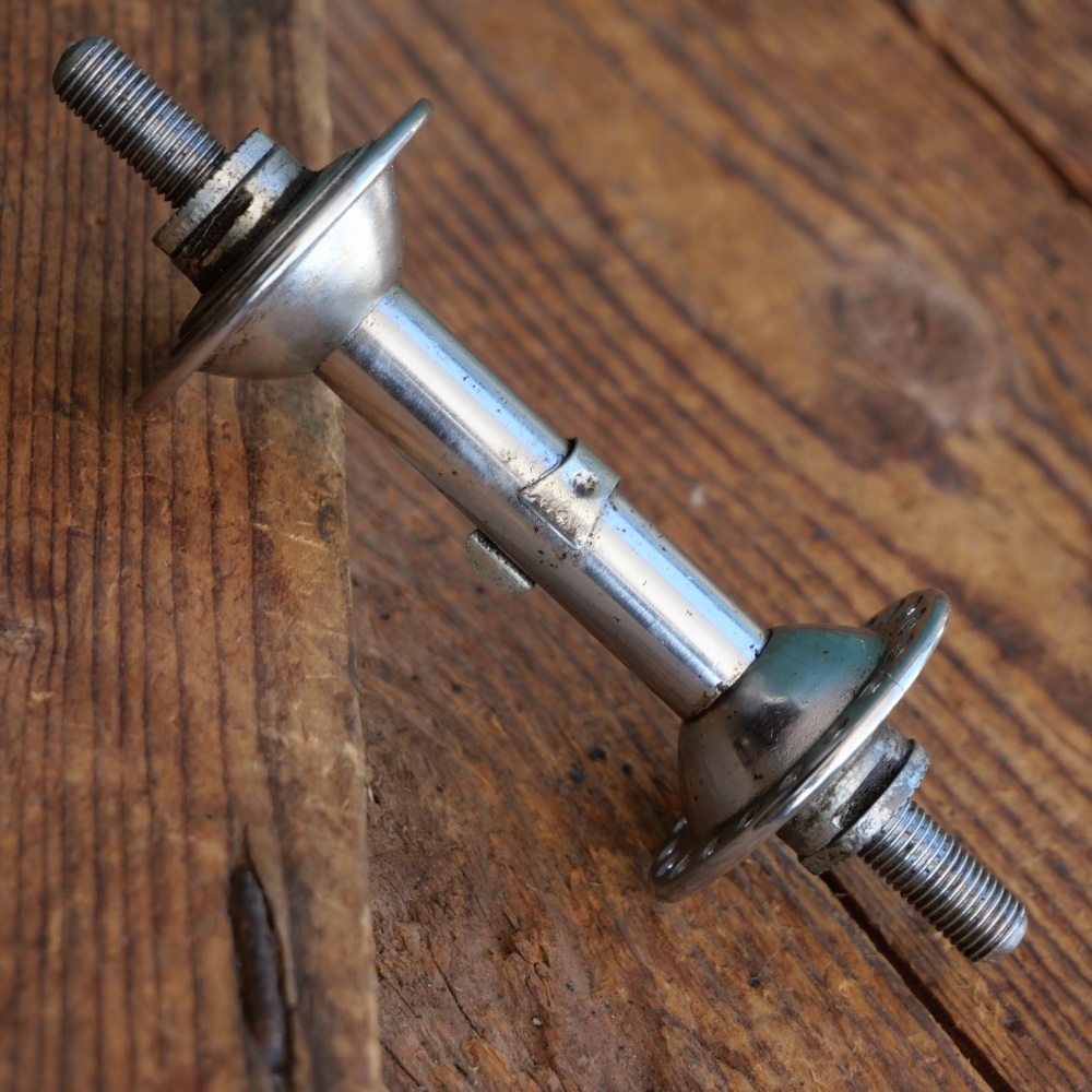 Nabe Vorderrad Fahrrad, original 50er Jahre, für Sportrad, verchromt, 36 Loch, Einbaumaß ca. 90 mm (variabel), gebraucht mit schöner Patina, Zustand gemäß Fotos