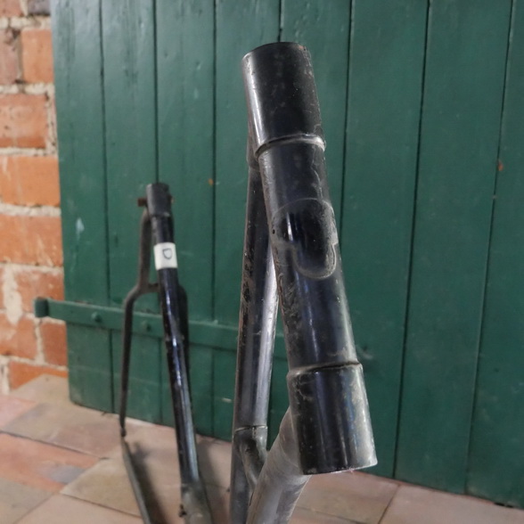 Fahrradrahmen "Wanderer" Damenausführung 28 Zoll, Rahmenhöhe 55 cm, Rahmennummer 393XXX, Sattelrohr partiell mit Dellen, 30er Jahre