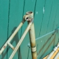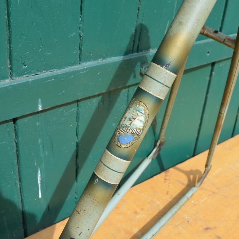 Fahrradrahmen "Wolfram" Damenausführung, RH= 55 cm, Rahmennummer 63XXX, mit Gabel und Steuersatz, hellgrün mit dunkelgrüner Linierung, 28 Zoll, Modell der 50er Jahre.
