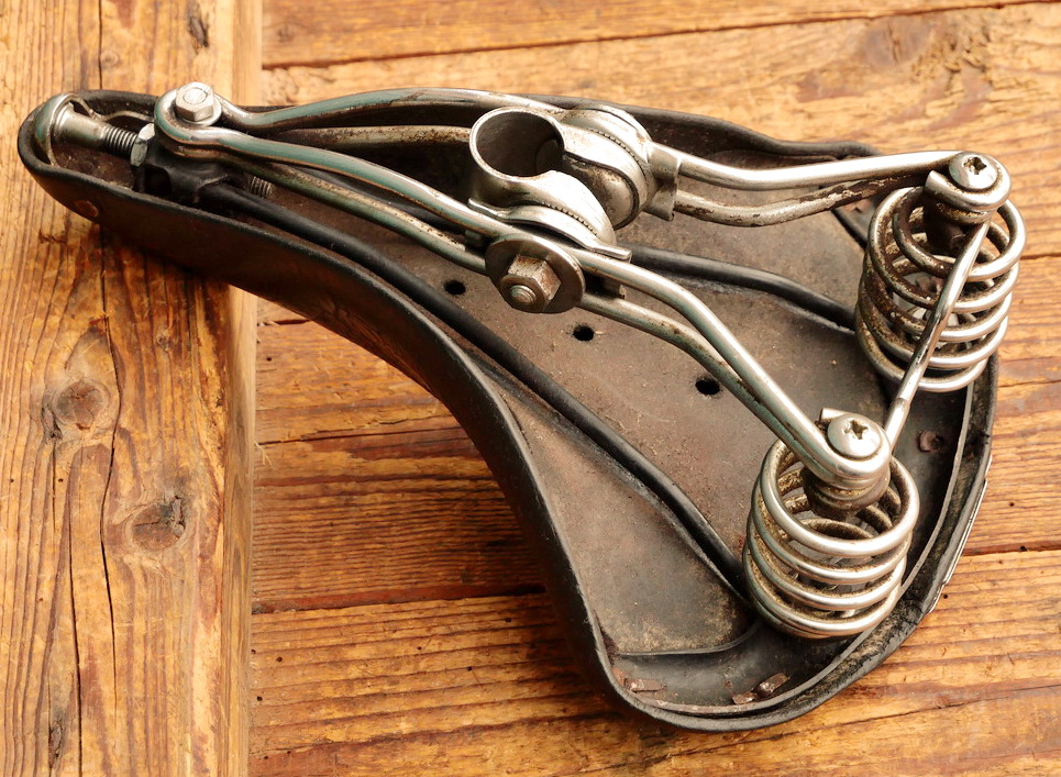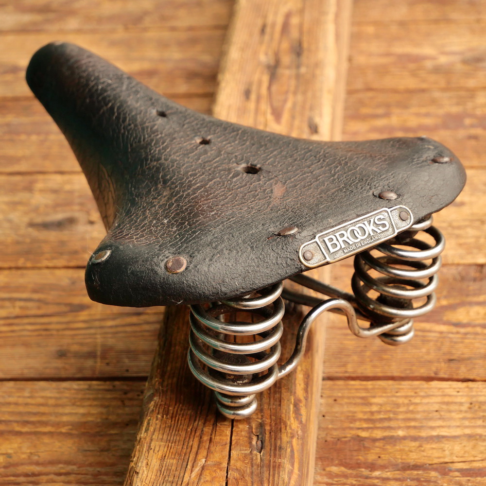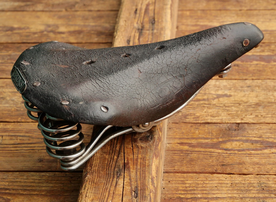 Sattel, Herren, BROOKS B66, 50er/60er J., Leder schwarz, Gestell verchromt, Breite ca. 20 cm, Länge ca. 27 cm, gebraucht, Zustand gemäß Bildern