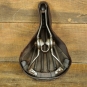 Sattel, Herren, FELBUR/CARL VOM FELD, 50er J., für Sportrad, Leder braun, Gestell verchromt, Breite ca. 16 cm, Länge ca. 26 cm, gebraucht mit Patina, Zustand gemäß Bildern