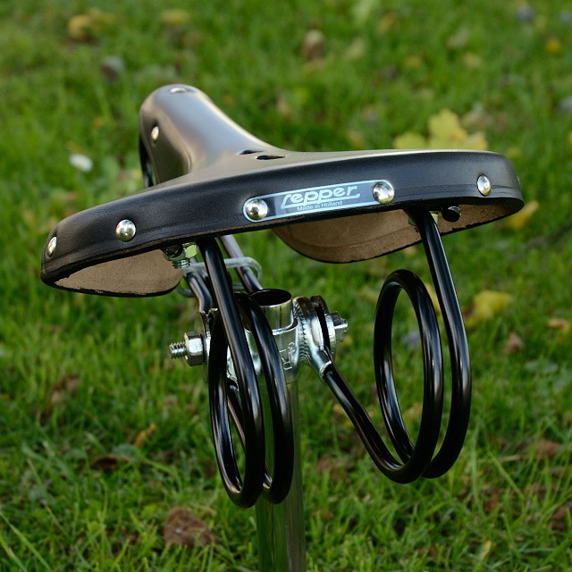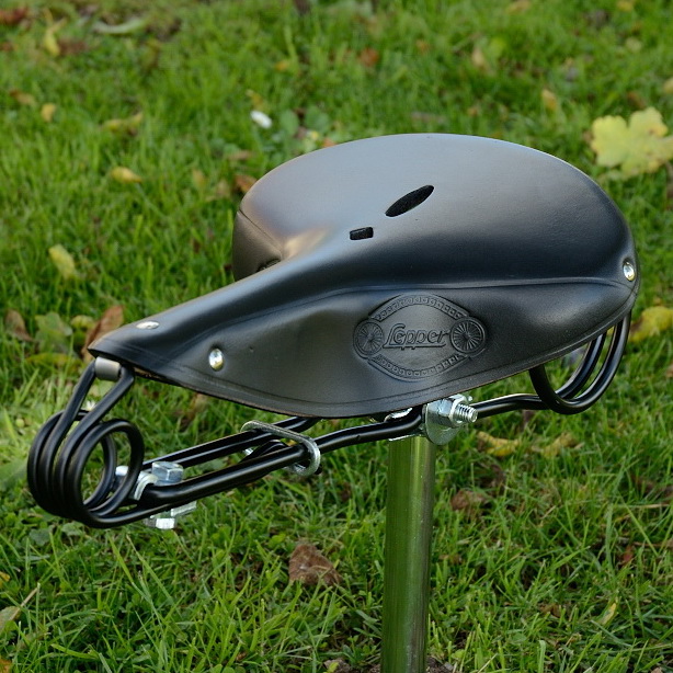 Sattel Lepper "Haarnadel" schwarze Kernlederdecke, schwarze Untergestell, alter LEPPER Stempel im Leder, Kernlederdecke, unvergleichlicher "Hängemattenkomfort" bei ca. 1890-1950er Jahre Optik, limitierte Sonderedition.