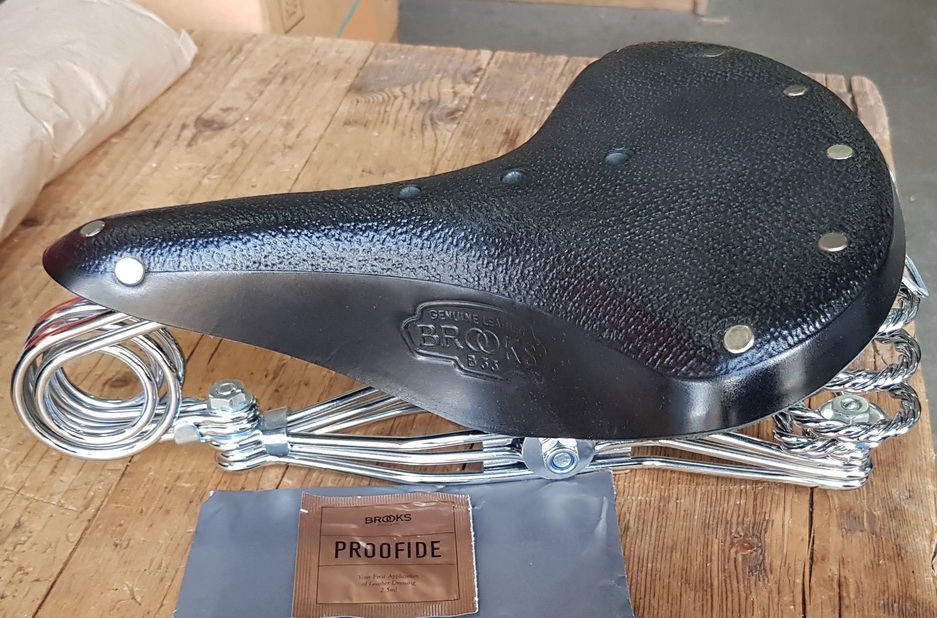 Sattel Touren "Brooks B33", Leder schwarz, Untergestell verchromt, üppig gefederter Komfortsattel. Auch für Motorfahrräder einsetzbar..