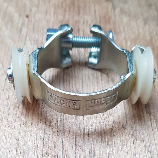 Kettenleitrolle, "Sachs-Huret" doppelt, für Schaltzug Ketten-oder Nabenschaltung, glanzverzinkt, alte Neuware