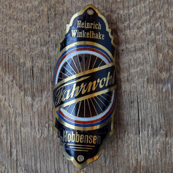Steuerkopfschild FAHRWOHL, 20er Jahre, Originalschild aus Sammlungsbestand, Lochabstand 71 mm Ideal für den passenden Fahrradoldtimer oder die Sammlervitrine. Zustand siehe Bild. Übrigens: Wir haben noch eine Riesenmenge weiterer Steuerkopfschilder und Schutzblechembleme im Bestand, die wir niemals alle listen können. Fragt einfach an, wenn Ihr auf der Suche nach einem speziellen Schild oder Emblem seid, vielleicht können wir helfen.