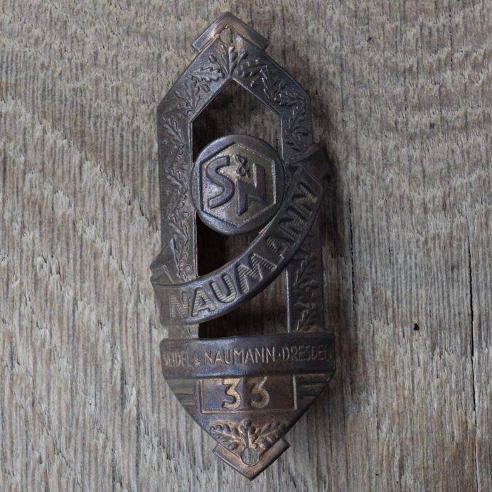 Steuerkopfschild SEIDEL & NAUMANN, 30er Jahre, Originalschild aus Sammlungsbestand, Lochabstand 75 mm Ideal für den passenden Fahrradoldtimer oder die Sammlervitrine. Zustand siehe Bild. Übrigens: Wir haben noch eine Riesenmenge weiterer Steuerkopfschilder und Schutzblechembleme im Bestand, die wir niemals alle listen können. Fragt einfach an, wenn Ihr auf der Suche nach einem speziellen Schild oder Emblem seid, vielleicht können wir helfen.