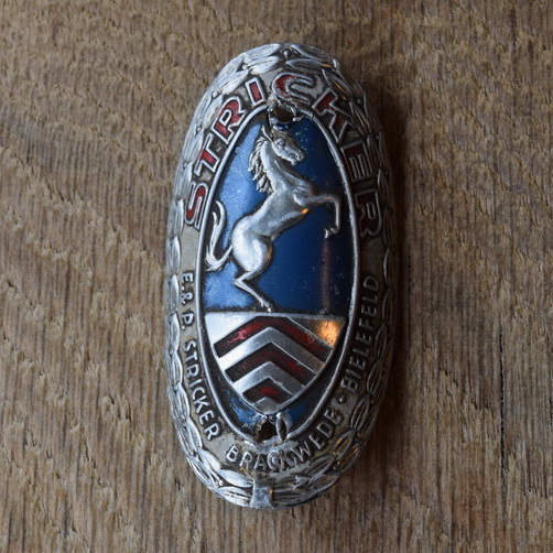 Steuerkopfschild Stricker, 50er Jahre, Originalschild aus Sammlungsbestand, Lochabstand 45 mm Ideal für den passenden Fahrradoldtimer oder die Sammlervitrine. Zustand siehe Bild. Übrigens: Wir haben noch eine Riesenmenge weiterer Steuerkopfschilder und Schutzblechembleme im Bestand, die wir niemals alle listen können. Fragt einfach an, wenn Ihr auf der Suche nach einem speziellen Schild oder Emblem seid, vielleicht können wir helfen.