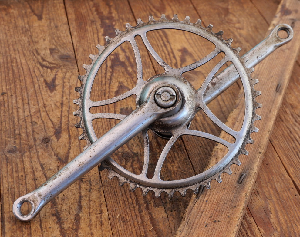Tretlager RENAK, für Tourenrad, DDR orig. 50er-80er Jahre, verchromt, Glockenlager, Kettenblatt 46 Zähne, Kurbellänge 170 mm, Durchmesser Lagerschalen 40 mm, gebraucht mit schöner Patina, Zustand siehe Bilder. Rares Originalteil für den passenden Klassiker! Hinweis zum Zustand: Die Tretlager sind unrestauriert,in der Substanz aber ok. Optik und Zustand der Zähne, siehe Bilder. Die Konen und Lager müssen,soweit überhaupt dabei und je nach Anspruch an den technischen Zustand, ggf. überholt/ergänzt oder ausgetauscht werden. Ersatzteile können wir für viele Typen gegen Berechnung liefern.