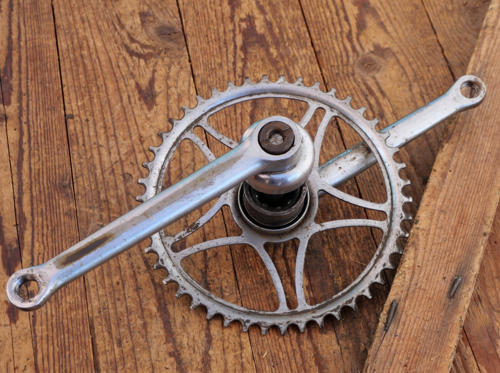 Tretlager RENAK, für Tourenrad, DDR orig. 50er-80er Jahre, verchromt, Glockenlager, Kettenblatt 46 Zähne, Kurbellänge 170 mm, Durchmesser Lagerschalen 40 mm, gebraucht mit schöner Patina, Zustand siehe Bilder. Rares Originalteil für den passenden Klassiker! Hinweis zum Zustand: Die Tretlager sind unrestauriert,in der Substanz aber ok. Optik und Zustand der Zähne, siehe Bilder. Die Konen und Lager müssen,soweit überhaupt dabei und je nach Anspruch an den technischen Zustand, ggf. überholt/ergänzt oder ausgetauscht werden. Ersatzteile können wir für viele Typen gegen Berechnung liefern.