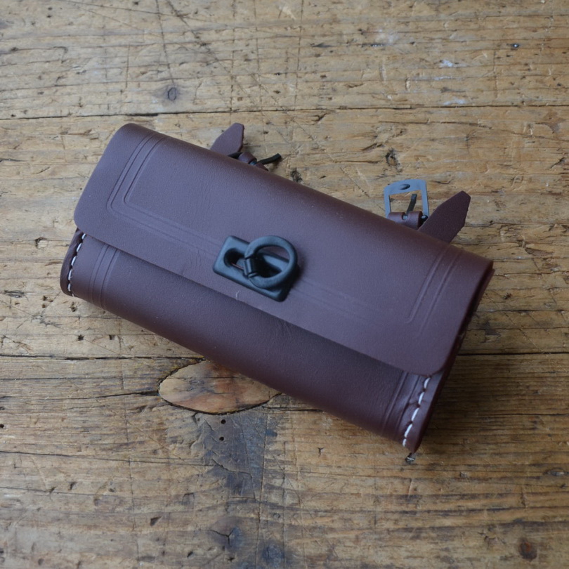 Werkzeugtasche, Leder, rotbraun, Beschläge Kunststoff, ca. 150 x 70 x 30 mm, passend für viele Fahrradklassiker