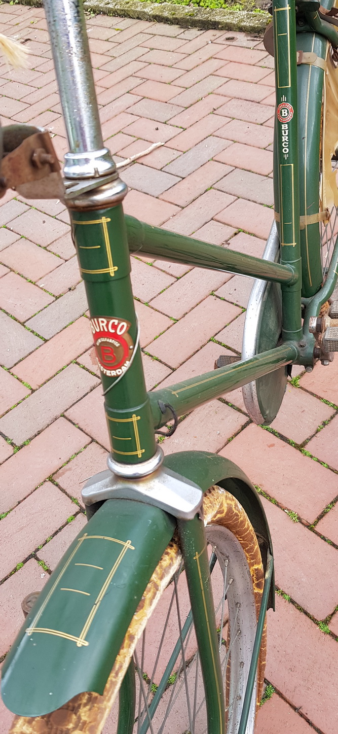Damenfahrrad "BURCO", Amsterdam, solider, hochwertiger Marken-Tourer der 50er Jahre, sehr guter Originallack, alle markenspezifischen Teile vorhanden, unberührt (noch mit Erstbereifung), unrestauriert erhalten aus Museumsfundus. Allgemeiner Wartungshinweis (gilt für alle angebotenen Fahrräder) : Das angebotene Fahrrad stammt aus einer alten Sammlung und die letzte Wartung /Überarbeitung liegt länger zurück ! Wer das Fahrrad nicht zu rein musealen Zwecken nutzt und fahren möchte, sollte VOR der ersten Fahrt sämtliche Schraubverbindungen nachziehen, alle Lager und Schmierstellen neu-oder nachschmieren, die Bereifung prüfen und wenn nötig erneuern, die Beleuchtung prüfen und gesetzeskonforme Zusatzstrahler montieren. Bei einigen unrestaurierten Fahrrädern ist auch mehr Arbeit bis hin zur Vollrestaurierung nötig, um diese wieder sicher fahren zu können. Bitte fragen sie uns VOR dem Kauf, wir beraten sie gerne. Der Fahrradversand innerhalb Deutschlands erfolgt kartonverpackt per Spedition. Gurtmaß: 450 cm, Selbstkostenpreis: 79,90 Euro. Für den Versand werden lediglich kleine Montagearbeiten vorgenommen. Die Fahrräder sind gut geschützt und kommen heile an. Auch eine zeitnahe Selbstabholung in 32609 Hüllhorst ist nach Absprache möglich. Ein Versand ins Ausland ist nur weitgehend demontiert möglich, nähere Infos und aktuelle Preise sind zu erfragen.
