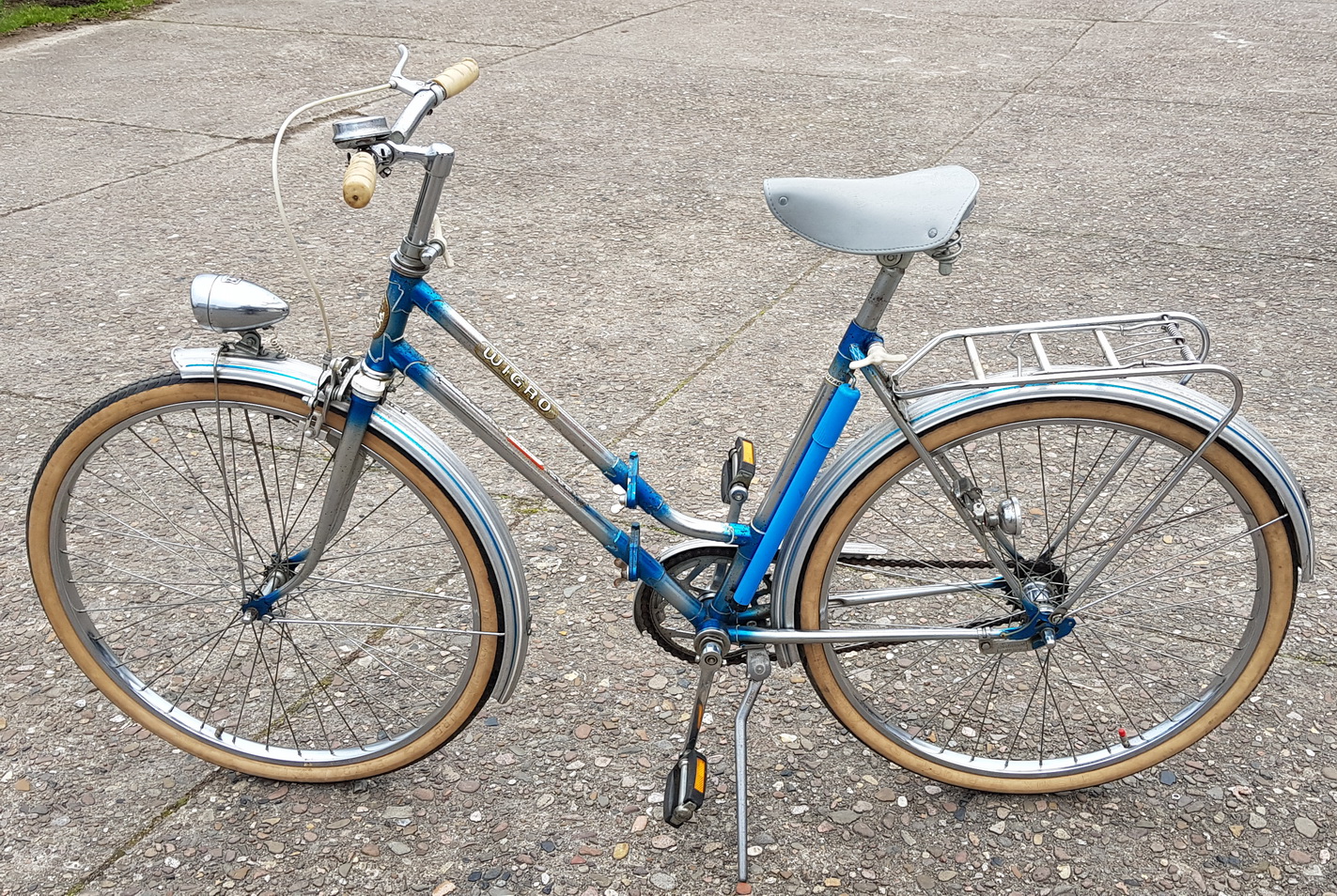 Zerlegerad, "WIGRO Sport", (Wilhelm Grohmann) , 60er Jahre , 26", blau, Originalzustand mit Patina, s. Bilder. Lenkervorbau mit Schnellklemmung. Zur Teilung wird das Fahrrad in der Rahmenmitte in 2 einfach transportabele Teile zerlegt. Seltenes 26er Zerlegerad aus der Vorklappradzeit.. Wartungshinweis (gilt für alle angebotenen Fahrradklassiker): Das angebotene Fahrrad ist unrestauriert oder die Restaurierung liegt einige Jahre zurück ! Wer das Fahrrad nicht zu rein musealen Zwecken nutzt und fahren möchte, sollte VOR der ersten Fahrt sämtliche Schraubverbindungen nachziehen, alle Lager und Schmierstellen neu-oder nachschmieren, die Bereifung prüfen und wenn nötig erneuern, die Beleuchtung prüfen und gesetzeskonforme Zusatzstrahler montieren. Bei einigen unrestaurierten Fahrrädern ist auch mehr Arbeit bis hin zur Vollrestaurierung nötig, um diese wieder sicher fahren zu können. Bitte fragen sie uns VOR dem Kauf, wir beraten sie gerne.