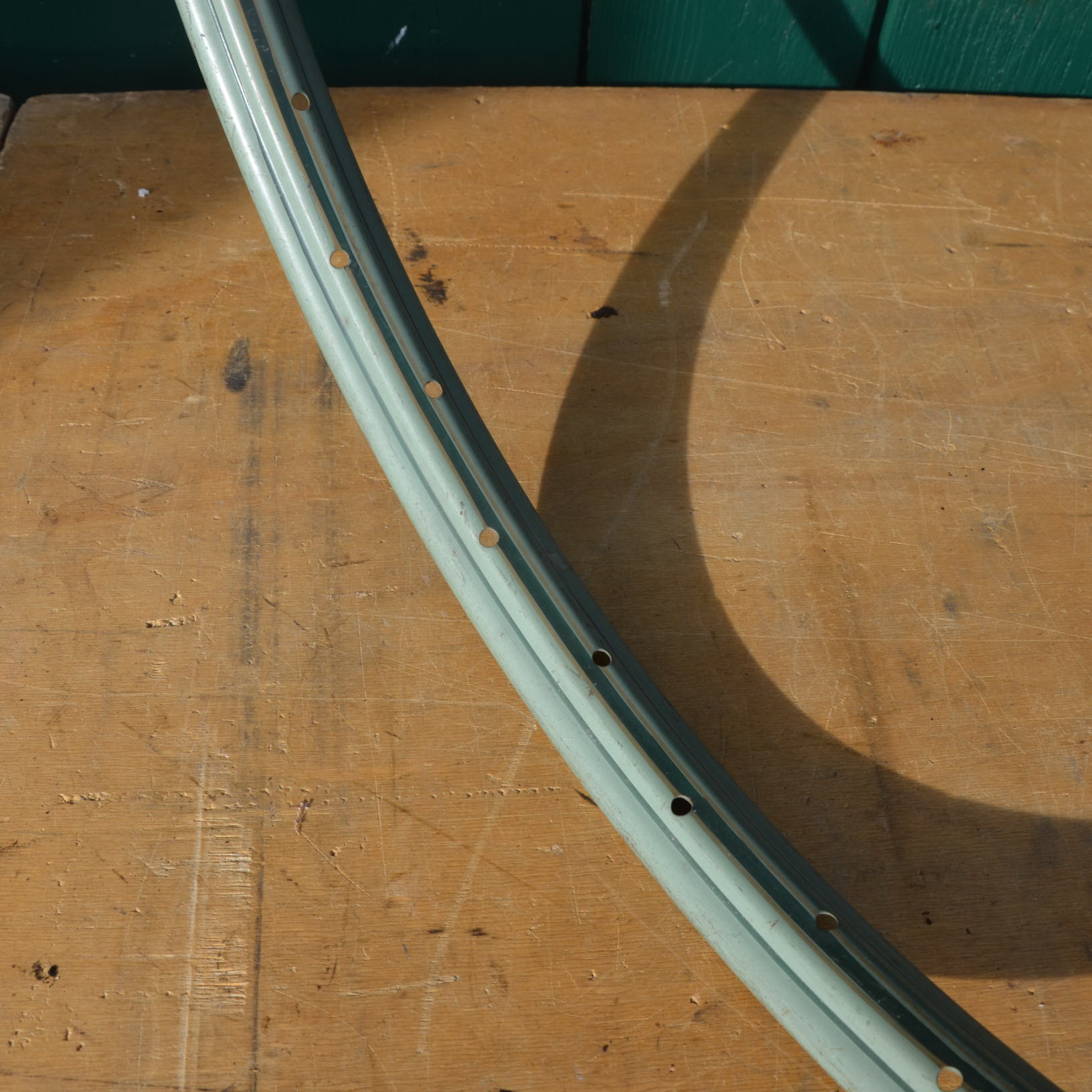 Felge 26 x 1,75, hellgrün, Linierung grün/gold, Breite 36 mm, 36-loch, Ventilbohrung 8,5 mm, NOS