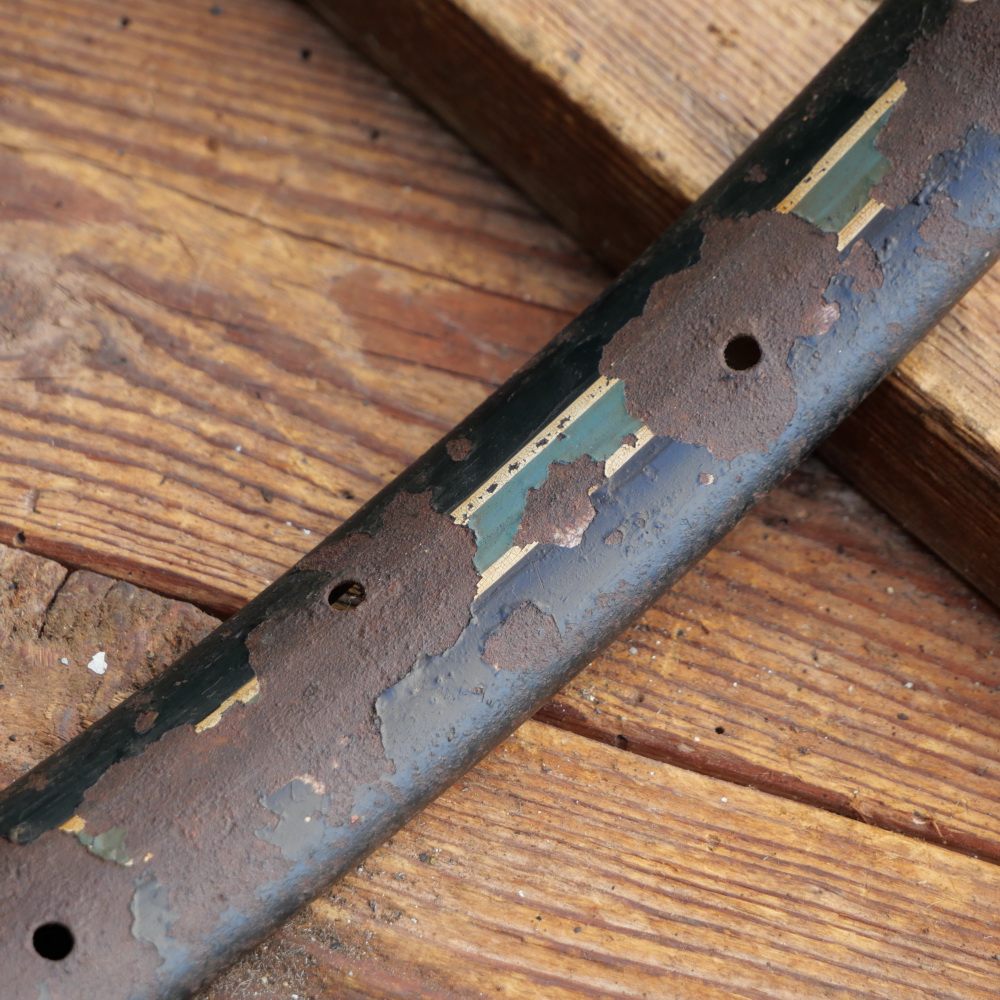 Fahrrad-Wulstfelge 28 Zoll Außendurchmesser ca. 645 mm, 10er-30er J., schwarz, Linien blau/weiß, gebr.