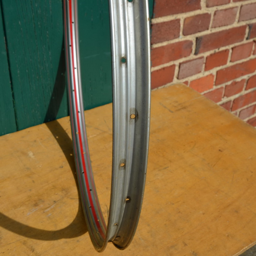 Felge 28 x 1,75 für Drahtbereifung, 36-loch, Breite 35,5 mm, Silber, Linierung rot, Passend gebohrt für 2mm-Speichen