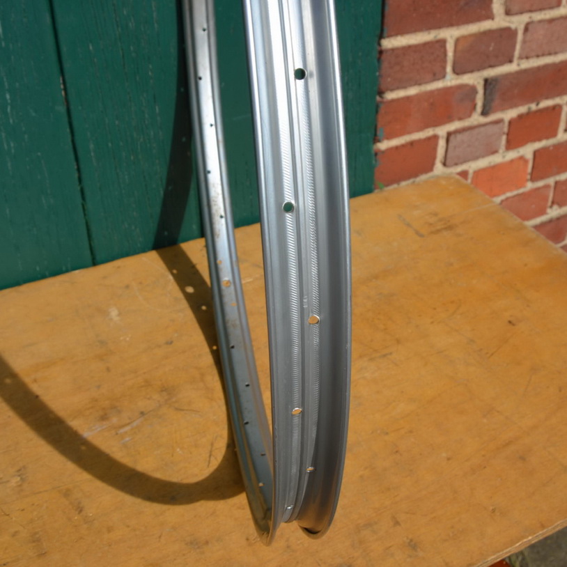 Felge 28 x 1,75 für Drahtbereifung, 36-loch, Breite 36 mm, silber mit Patina, Passend gebohrt für 2mm-Speichen