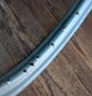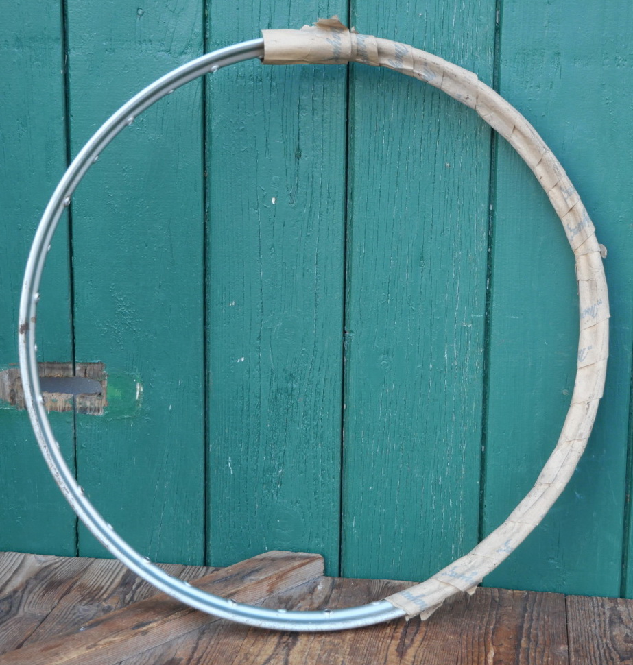 Moped-Felge MAYWEG, 26 Zoll (559), für Drahtbereifung 26 x 2.00, Stahl, silber lackiert, 30er-50er J., 36-Loch, Breite ca. 41mm, Nippellöcher 6mm, alte Neuware in Originalverpackung mit Patina, Zustand gemäß Fotos