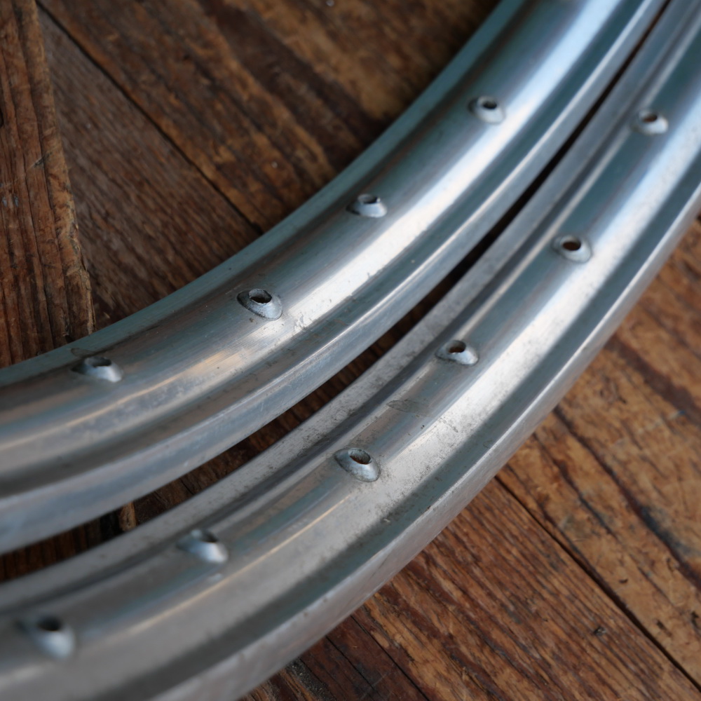 Moped-Felgensatz, 26 Zoll (559), für Drahtbereifung, Alu poliert, 50er/60er J., 36-Loch, NOS