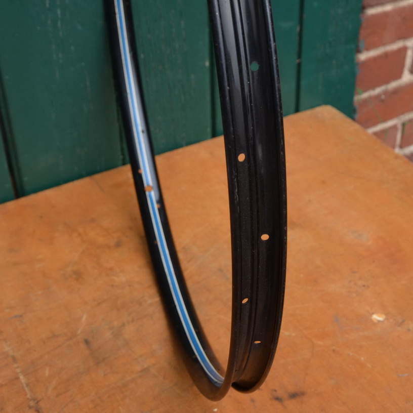 Wulstfelge 26 x 1 ½, 36-loch, Breite 33 mm, Linierung blau/weiß, NOS, Aussendurchmesser ca. 590 mm, passend gebohrt für 2mm Speichen, Auch passend für Schweizer Militärrad (Ordonanzrad)