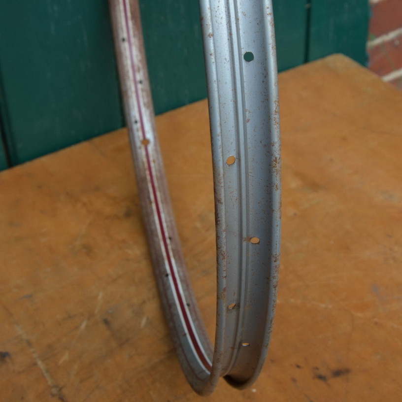 Wulstfelge 26 x 1 ½, 36-loch, Breite 33 mm, Silber, Linierung rot/weiß, Aussendurchmesser ca. 590 mm, passend gebohrt für 2mm Speichen, Auch passend für Schweizer Militärrad (Ordonanzrad)