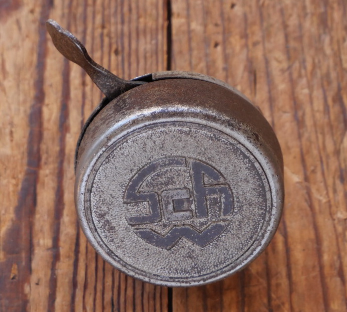 Fahrrad/Moped Klingel SCHARP-WEISSENBURG, orig. 1930er Jahre, verchromt, Durchmesser 55 mm, gebraucht, Zustand siehe Bilder. Diese Klingel kommt mit funktionstüchtigem Unterteil