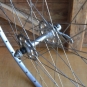 Laufrad vorne, 28 Zoll, Schlauchreifenfelge Mavic Monthlery Pro, Campa Record Hochflanschnabe 5-6 fach, Breite 20 mm, Einbaumaß 100 mm, Speichen verzinkt, gebraucht