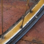 Vorderrad 26 Zoll (559), für Drahtbereifung Ballonrad, original 30er J., Felgenbreite ca. 38 mm, schwarz, Mitte Holzdekor, Linien weiß, Einbaumaß ca. 95mm, F&S-Nabe verchromt, Speichen 2 mm verchromt, gebraucht mit Patina, Zustand gemäß Fotos