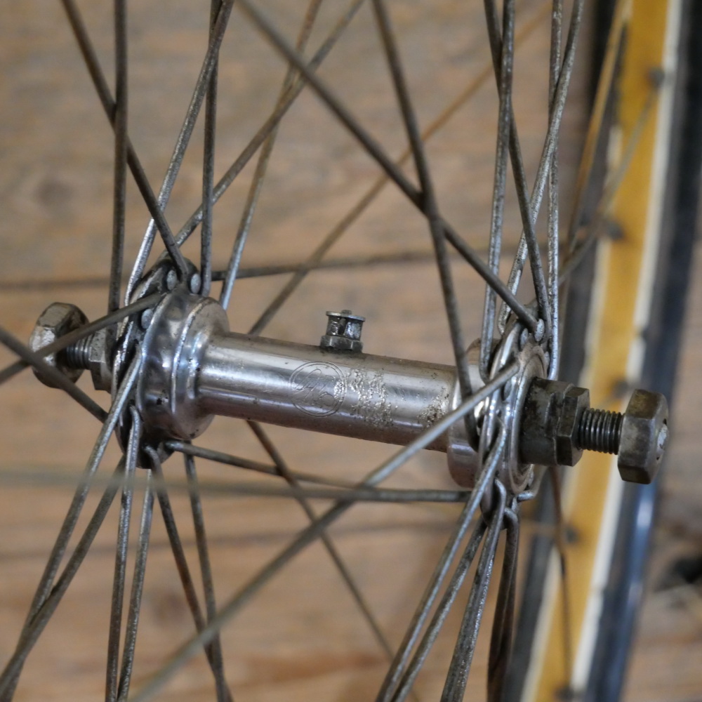 Vorderrad 26 Zoll (559), für Drahtbereifung Ballonrad, original 30er J., F&S-Nabe verchromt, gebr.