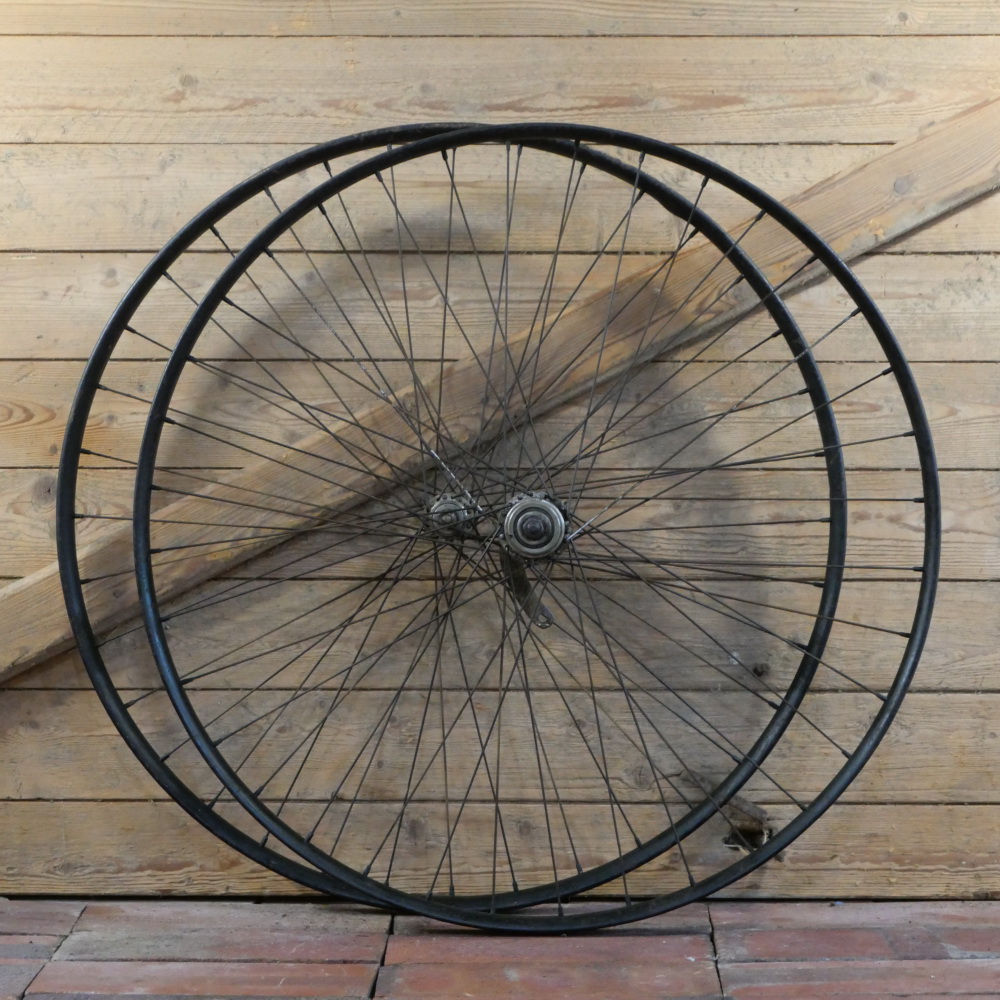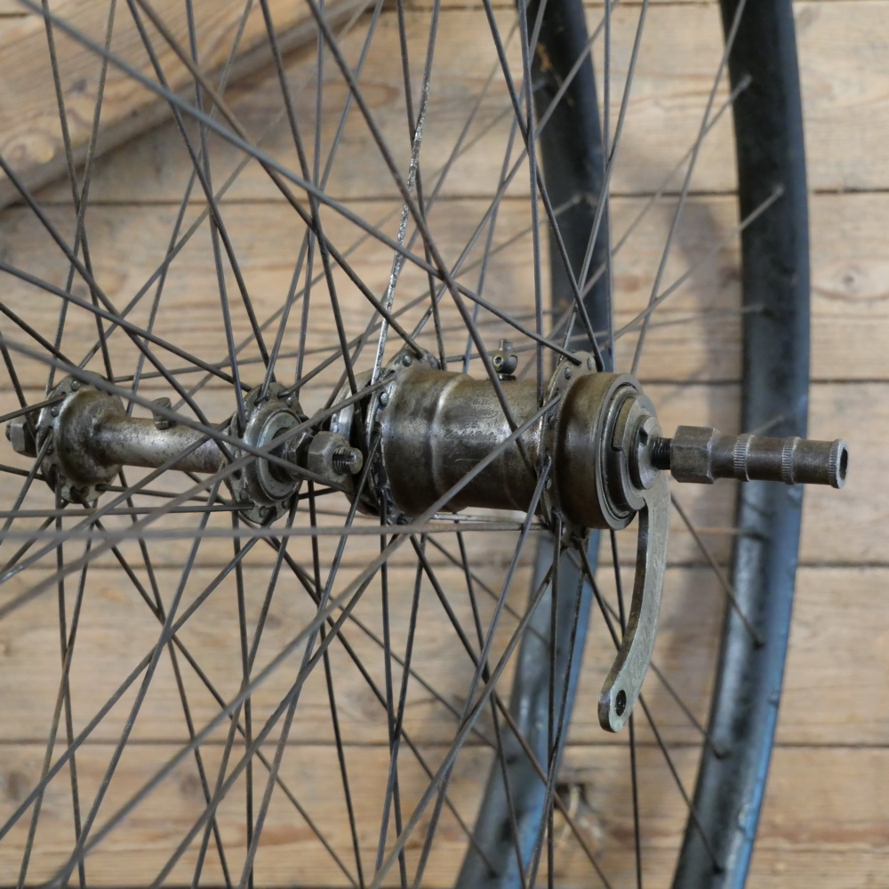 Laufradsatz 28 Zoll (635), für Wulstbereifung, original 1925, Naben PRÄNAFA/Torpedo vernickelt, gebr.