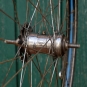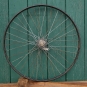 Hinterrad, 26 Zoll, mit Wulst-Felge, schwarz, Linien weiß/blau, 30er-50er J., Nabe RENAK, gebr.